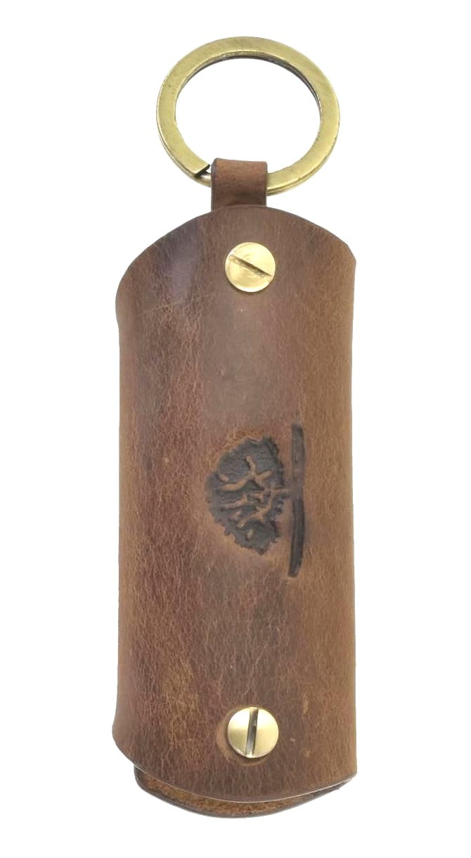 Etui na klucze typu „YALE” zamykane na zatrzask, uszyte z wysokiej jakości skóry naturalnej, obrabianej ręcznie, naturalnymi garbnikami, co nadaje jej niepowtarzalny wygląd i fakturę w odcieniu klasycznego „postarzanego” brązu.