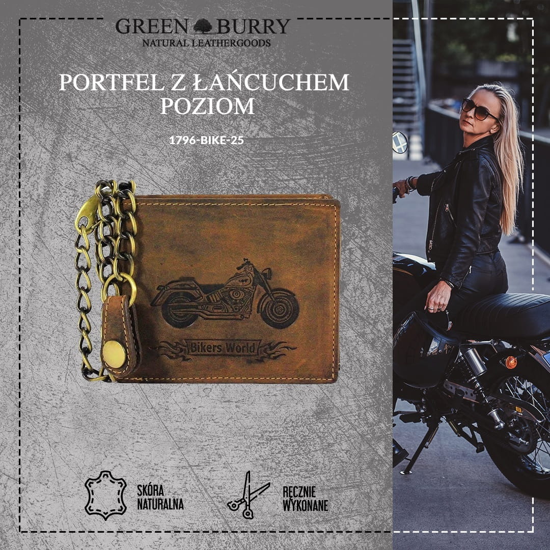 PORTFEL Z ŁAŃCUCHEM POZIOM SKÓRA VINTAGE GREENBURRY 1796-BIKE-25 MOTOCYKL