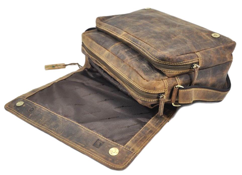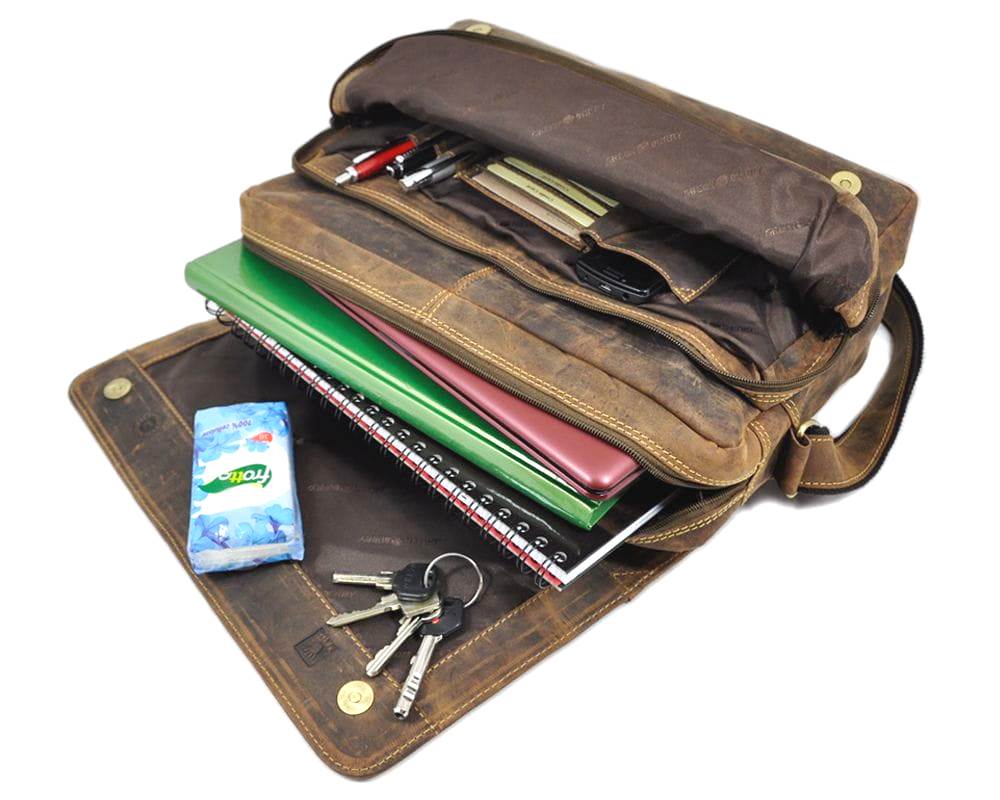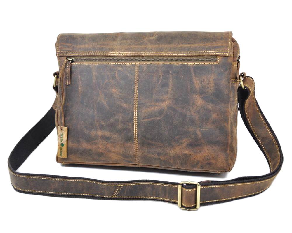 TORBA NA RAMIĘ MIEJSKA Z KLAPĄ FORMAT A4 NA LAPTOP SKÓRA VINTAGE GREENBURRY 1766-25