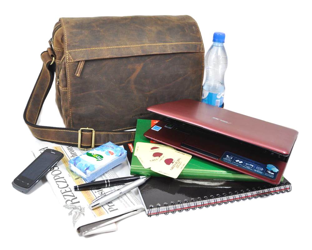 - torba skórzana zamykana klapą z dwoma zamkami magnetycznymi