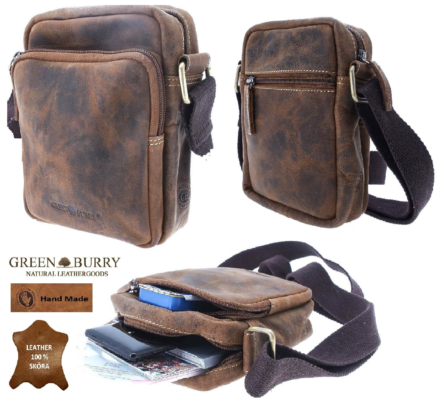 Wszystkie produkty wykonane są ręcznie z naturalnej skóry. Każdy kawałek skóry jest inny, ma swoją niepowtarzalną strukturę i odcień, dlatego też każdy egzemplarz zyskuje wyjątkowy i unikatowy charakter i może nieco różnić się od tego na zdjęciu. Pierwotny wygląd naturalnej skóry zmienia się pod wpływem użytkowania i działania warunków atmosferycznych - zmiana koloru (np. lekkie przyciemnienie) lub struktury, to nie wada produktu, ale potwierdzenie, że został wykonany z naturalnej, nieprzetworzonej chemicznie skóry.